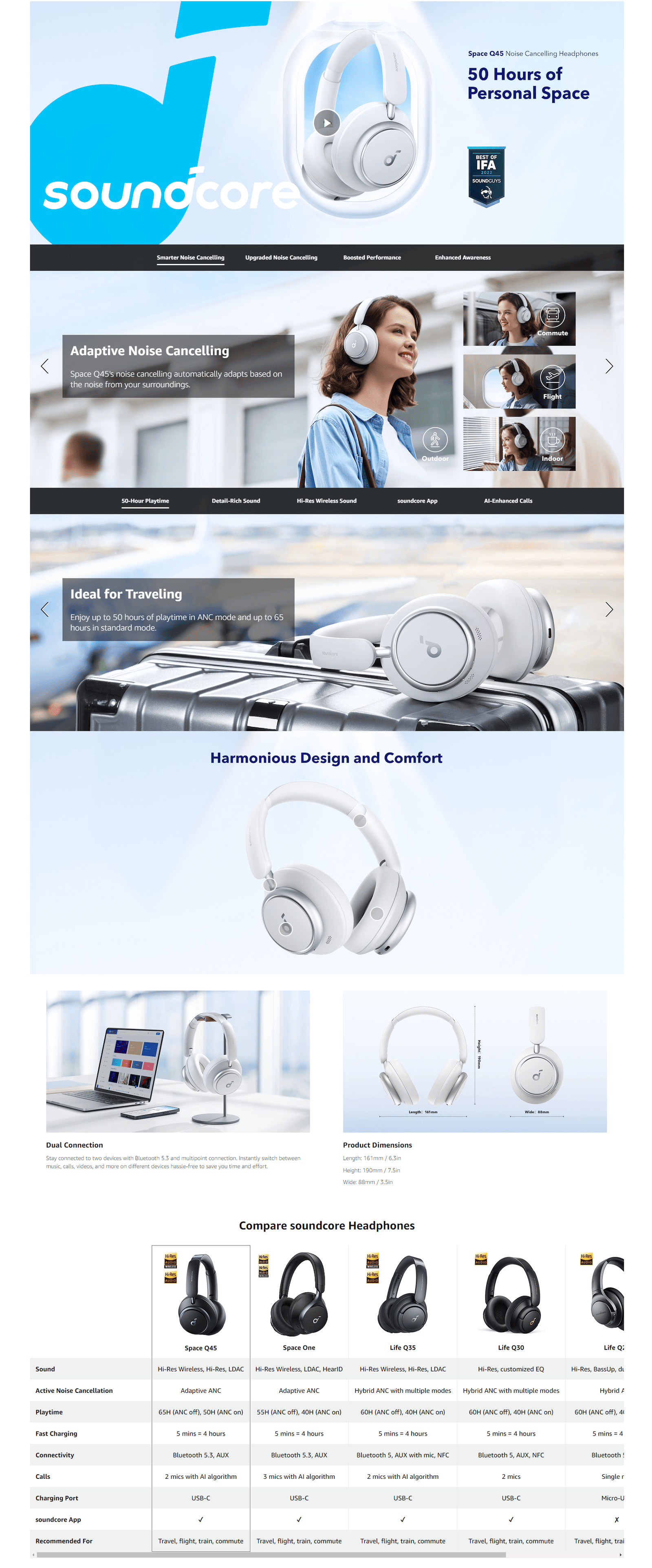 Connexion multipoint : connectez le casque antibruit Space Q45 à 2 appareils en même temps, idéal lorsque vous souhaitez basculer entre écouter de la musique, assister à des réunions à distance et passer des appels.