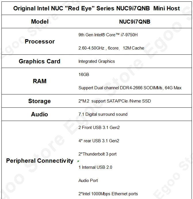 Intel NUC “œil rouge” série Core i7-9750H/i9-9980HK DNF co-marque jeu conception Mini PC hôte 12M Cache mémoire RTX 2060 6G
