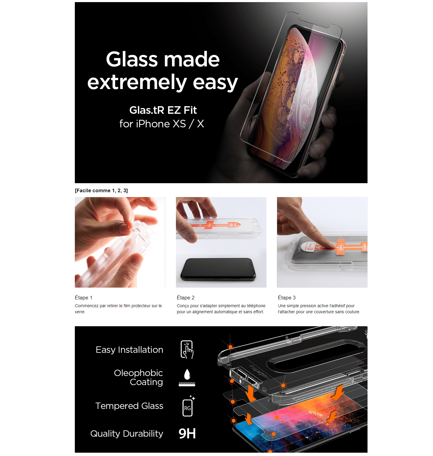 [INSTALLATION SUPER FACILE] Les outils d’alignement automatique améliorés sur mesure pour votre modèle rendent extrêmement facile à installer le film de protection d’écran en verre pour votre téléphone. En seulement 3 étapes, vous pouvez facilement terminer l’installation.