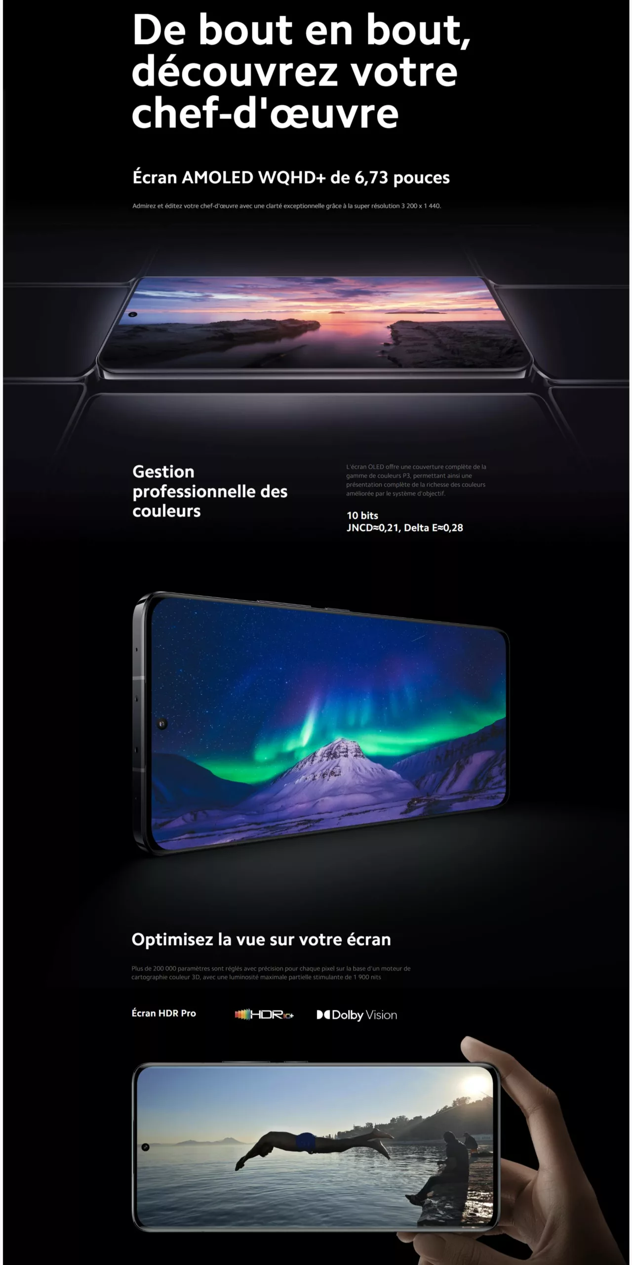 Ecran : 6,36 pouces , Type AMOLED, 120Hz, Dolby Vision, HDR10+ , 120Hz, HDR10, Dolby Vision,, 1080 x 24006 pixels (Protection Verre Corning Gorilla Glass 5 résistant aux rayures, revêtement oléophobe) ; Always-On display .